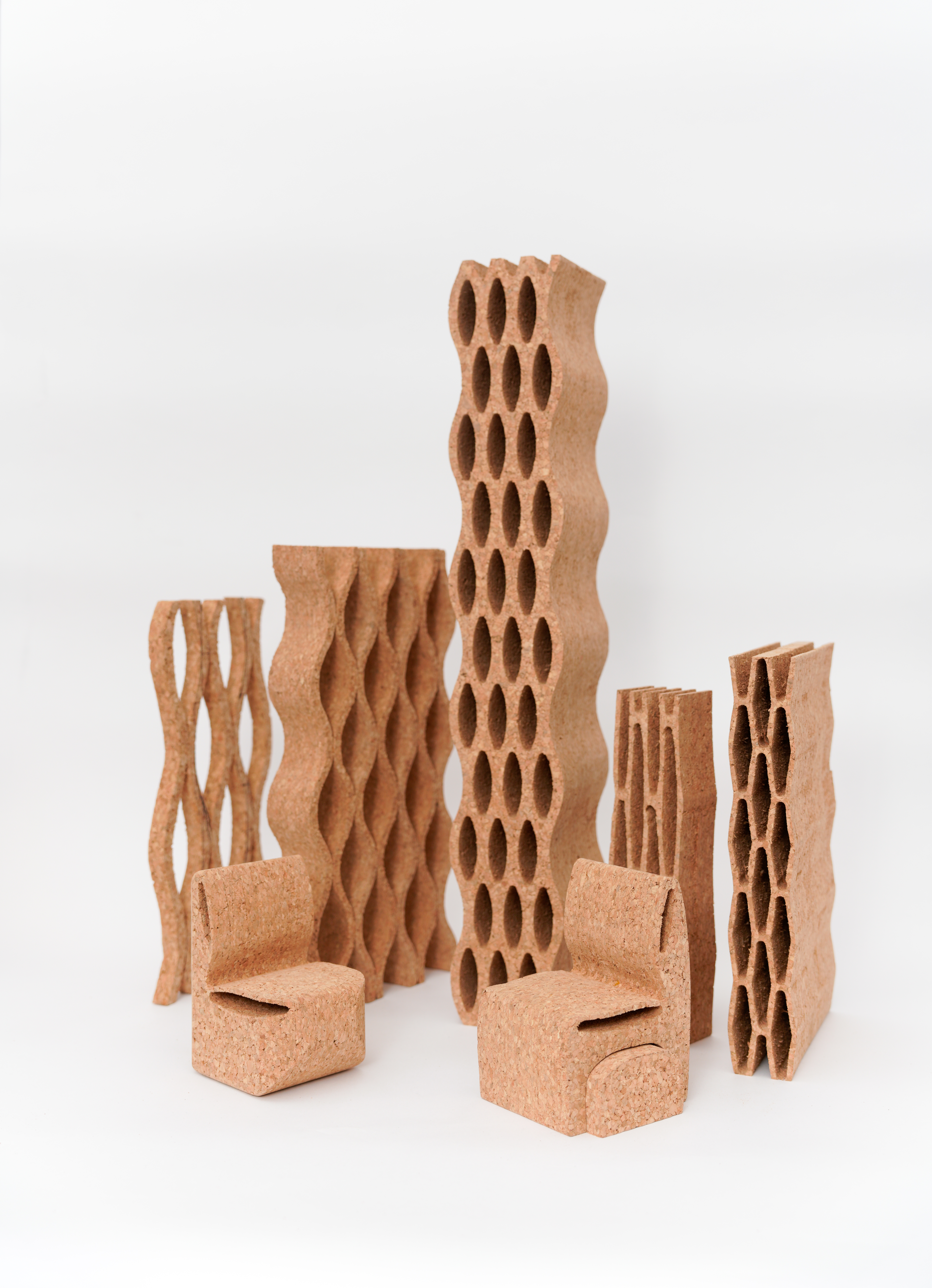 Cork, which is tree bark harvested from oak trees naturally inherent many super powers, among them is flexibility and compression. FlexiCork multiplies this ability and opens up the potential of cork usage in furniture cushioning and protective packaging in replacement of harmful materials.